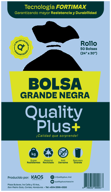 Bolsa grande negra para basura. Rollo de 50 bolsas (24"x30"). Uso doméstico y comercial.