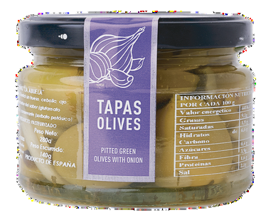 Aceitunas Gordal deshuesadas con aliño de tomate. Sabor mediterráneo.