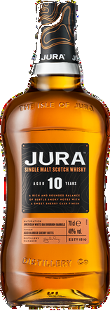 Single malt escocés de la Isla de Jura. ABV: 40%. Suave con notas marinas y miel.